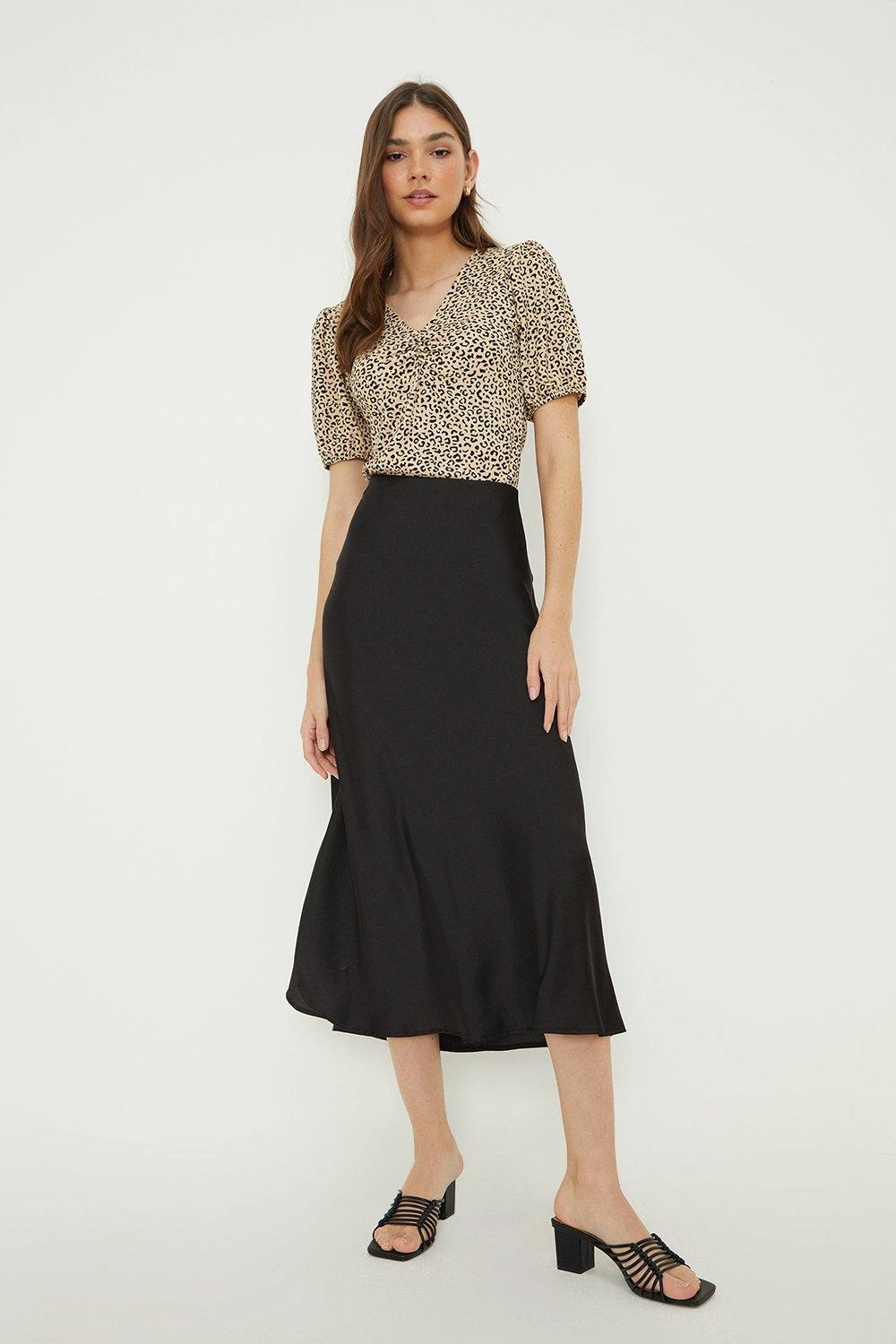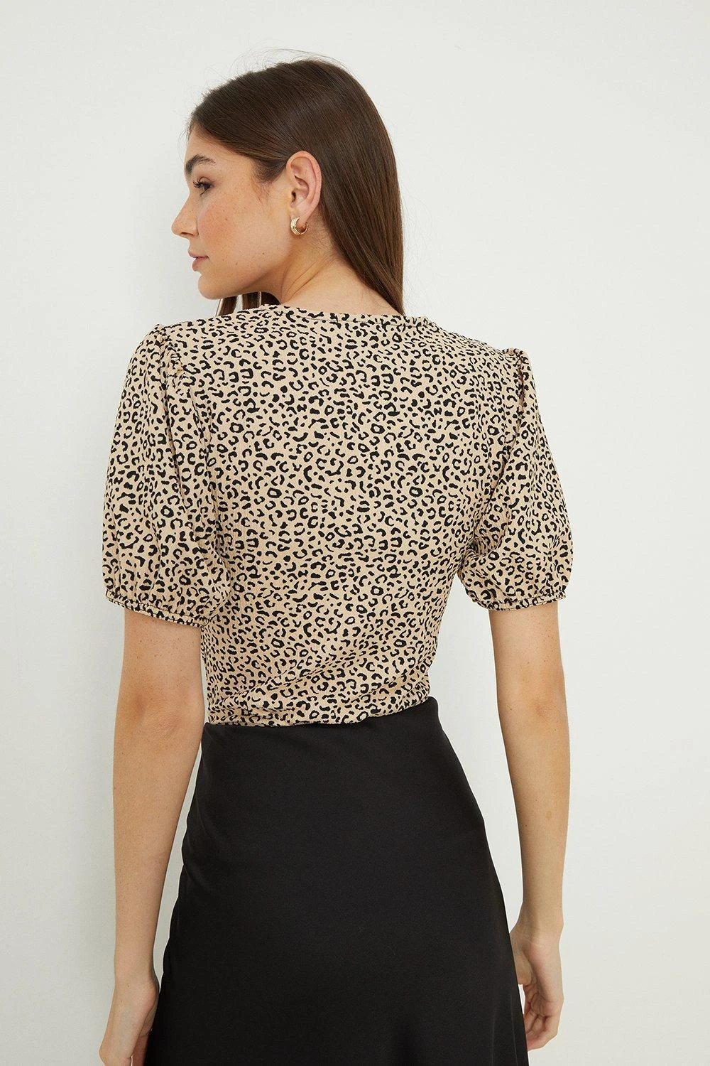 Dorothy Perkins Animal Ruched Front Puff Sleeve Top