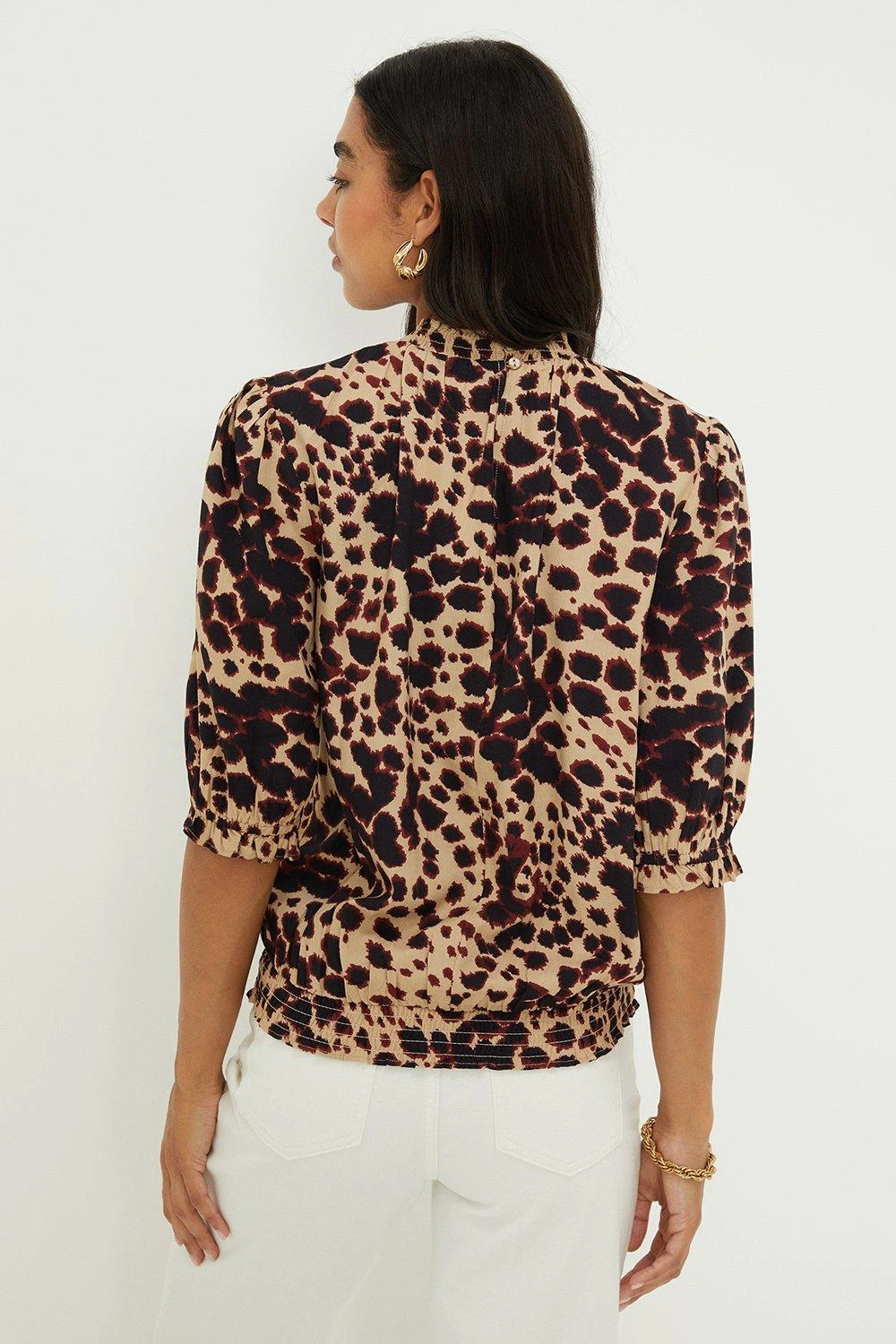Dorothy Perkins Animal Shirred Hem Short Sleeve Blouse