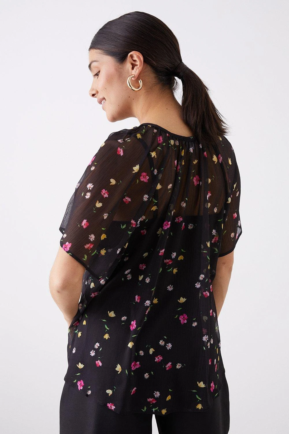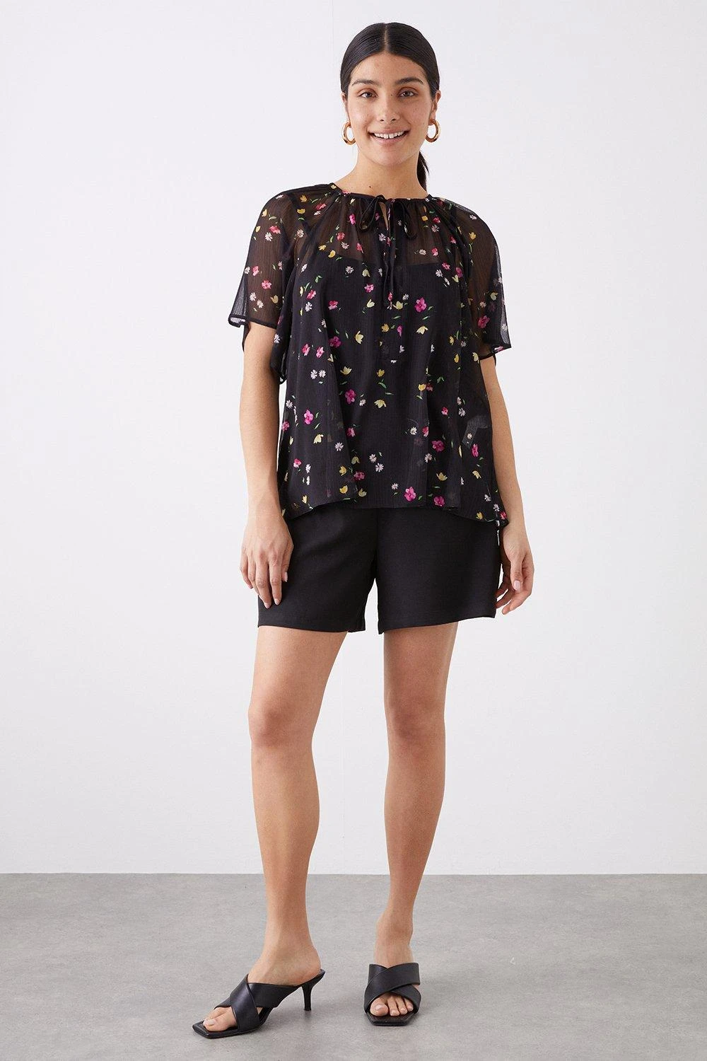 Dorothy Perkins Black Floral Chiffon Tie Neck Blouse