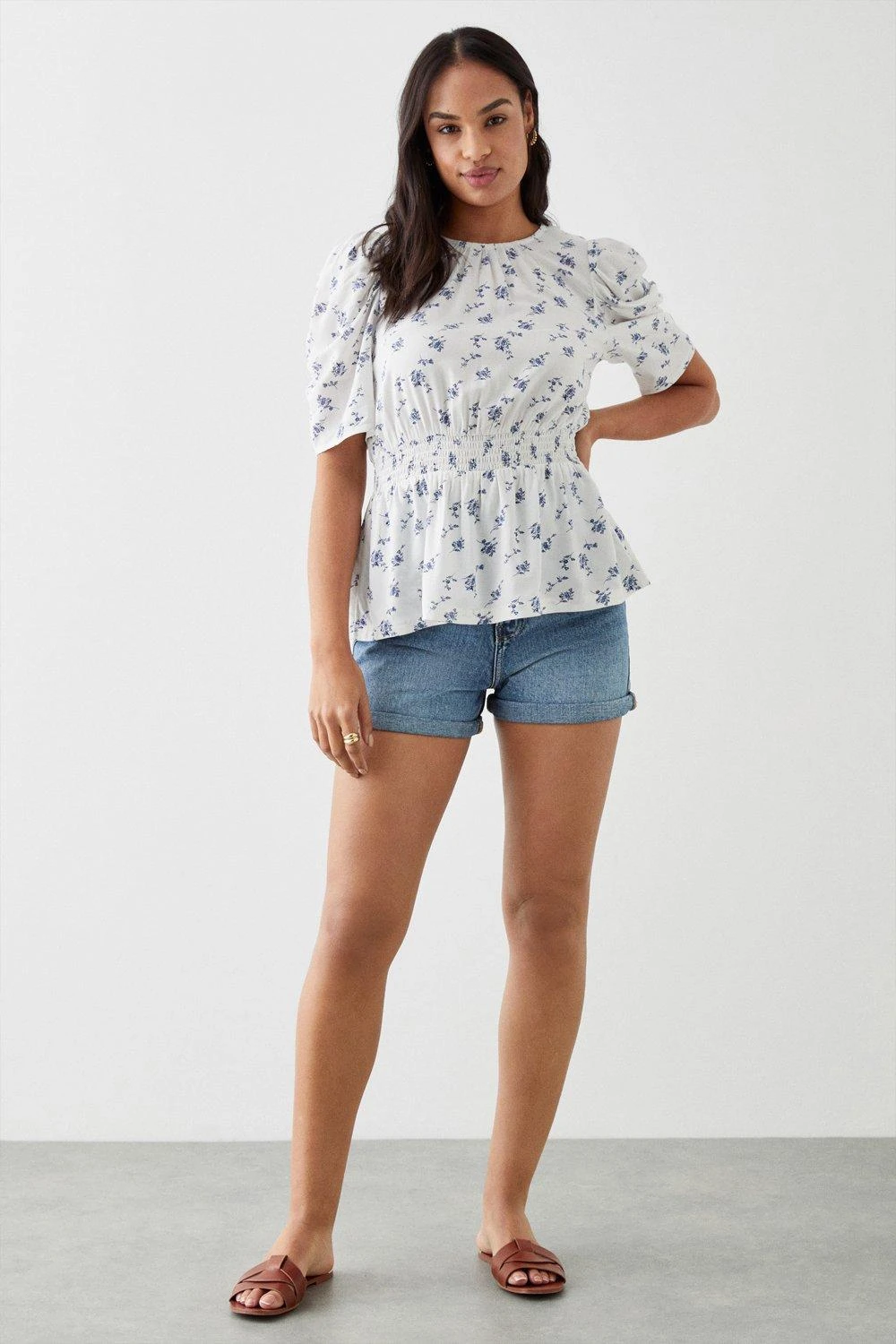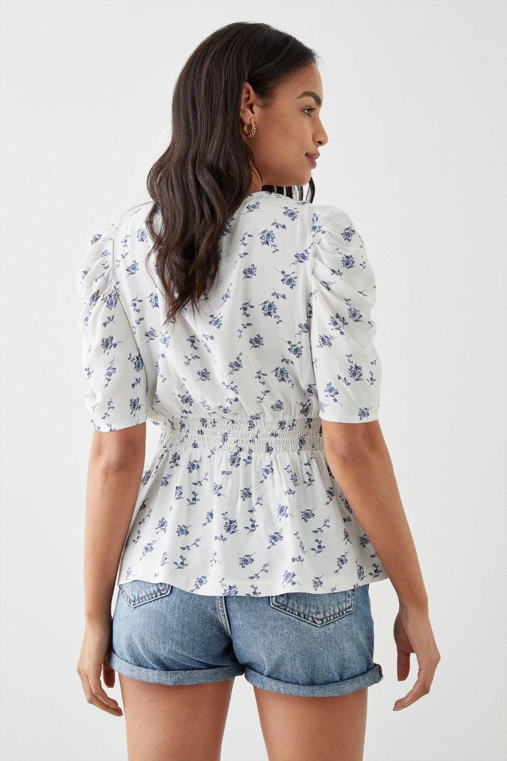 Dorothy Perkins Blue Floral Shirred Waist Blouse