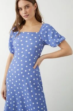 Dorothy Perkins Blue Spot Print Square Neck Midi Dress