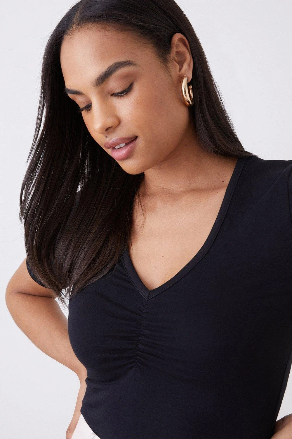 Dorothy Perkins Cotton V Neck Ruched Front Top