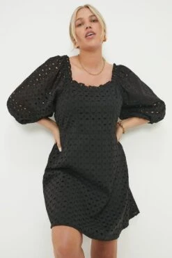 Dorothy Perkins Curve Black Broderie Mini Dress