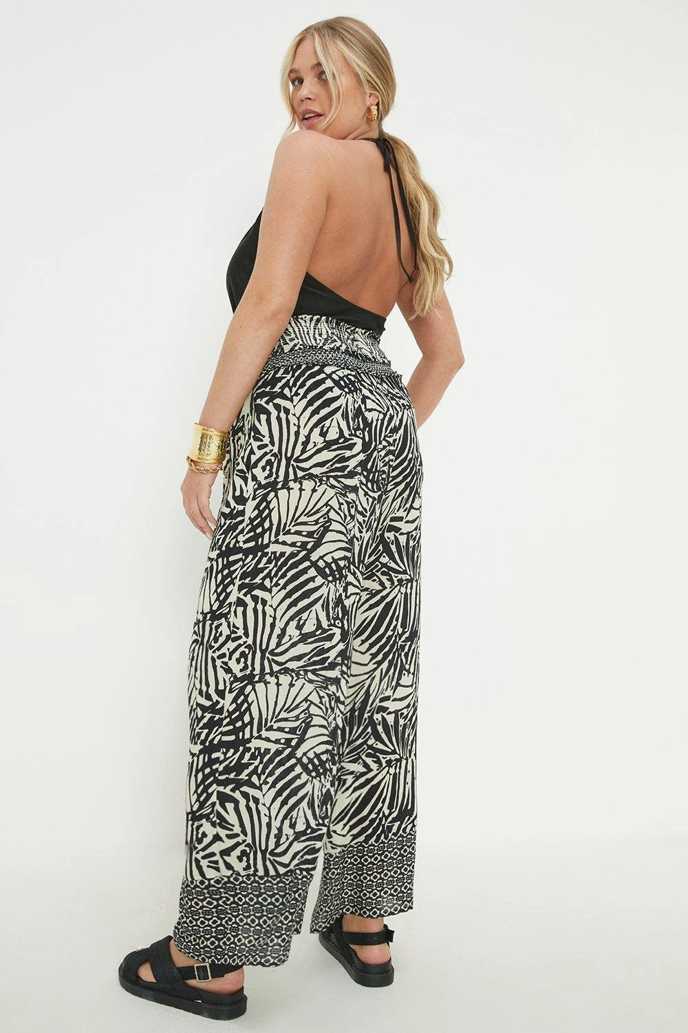 To the beach. When it comes to summer-ready styles, our collection of women’s beachwear is full of mood-boosting colours, fun prints and flattering silhouettes that’ll have you ready to hit the beach bar in no time. Think dresses, skirts and cover-ups; holiday packing just got that bit easier. Style: Curve Black Tropical Crinkle Wide Leg Trouser. Ideal for: Daywear. Model wears size UK 18 and is 5′ 9″ tall. Make-up & Fragrance: Primer (Estée Lauder, The Mattifier Shine Control Perfecting Primer + Finisher), Foundation (Lancôme, Teint Miracle Luminous Satin Foundation), Mascara (Estée Lauder, Double Wear Zero-Smudge Lengthening Mascara), Blusher (Benefit, Wanderful World Blushes Starlaa Rosy Bronze Powder Blusher), Setting Spray (Benefit, Porefessional Super Setter Setting Spray Mini 30ml), Fragrance (Elie Saab, Elixir).