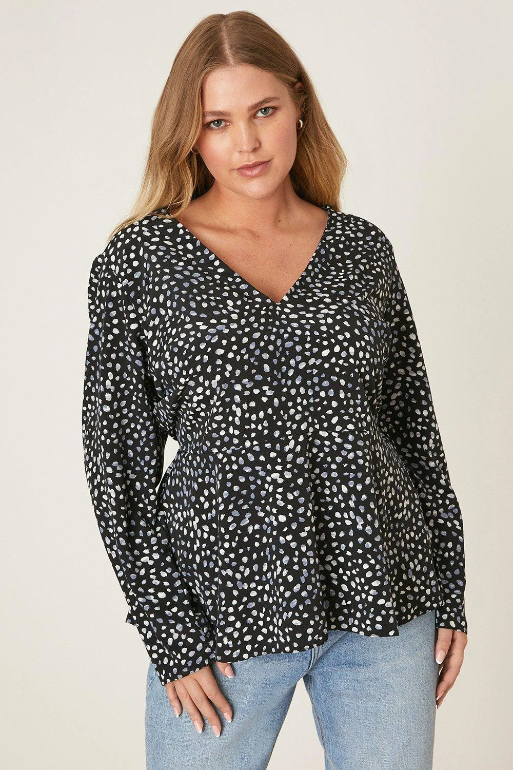 Cami or blouse? Shirt or bodysuit? Whatever you’re after, our women’s tops have you covered for every event in the social calendar. From casual fits to elevated styles for special occasions, we make it easy to nail the �jeans and a nice top’ look. Think puff sleeves, pretty prints, wrap silhouettes and so much more. Style: Curve Blue Spot Vneck Long Sleeve BlouseLength: Approx. 65cmFit: RegularIdeal for: DaywearDesign: All Over PrintMade in the UK