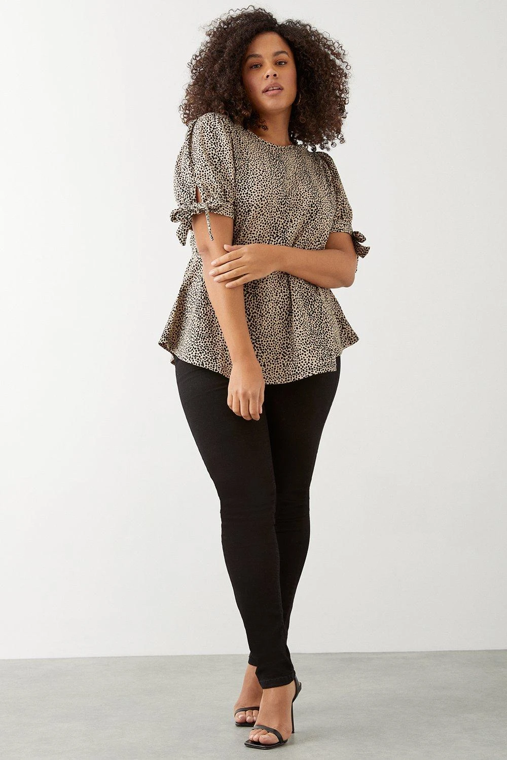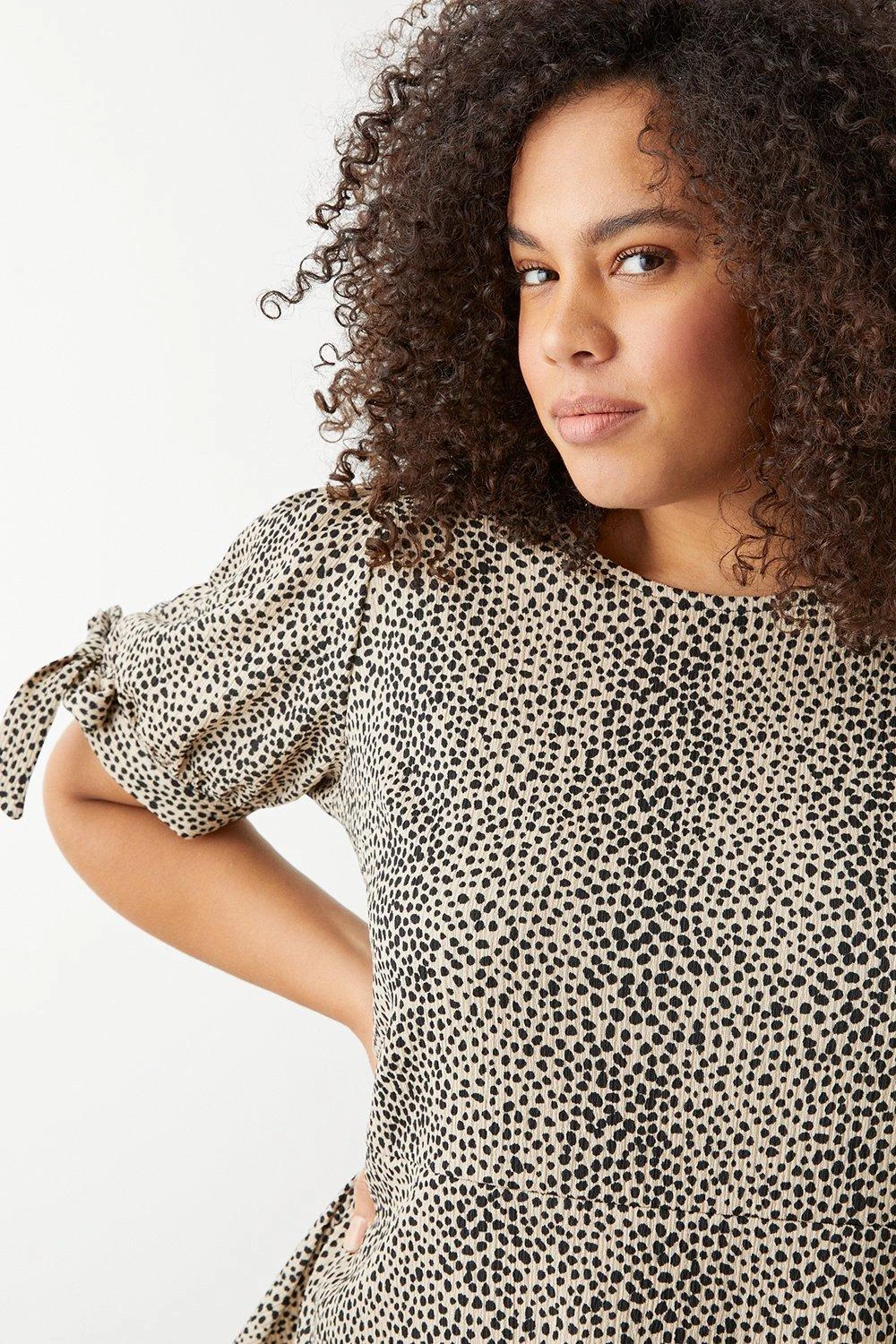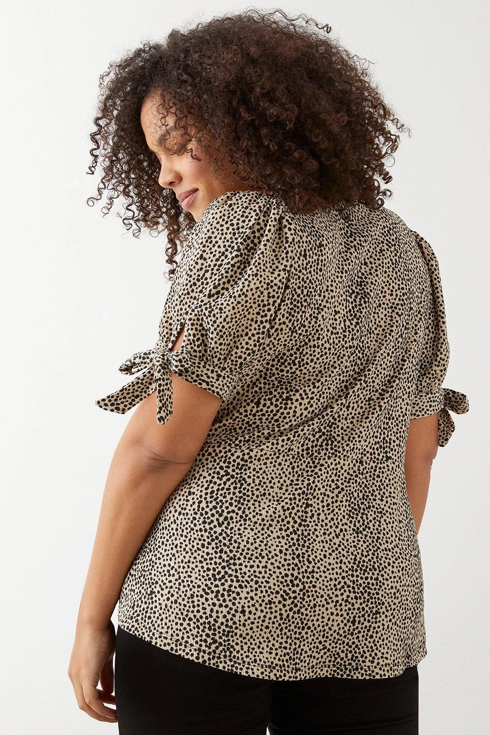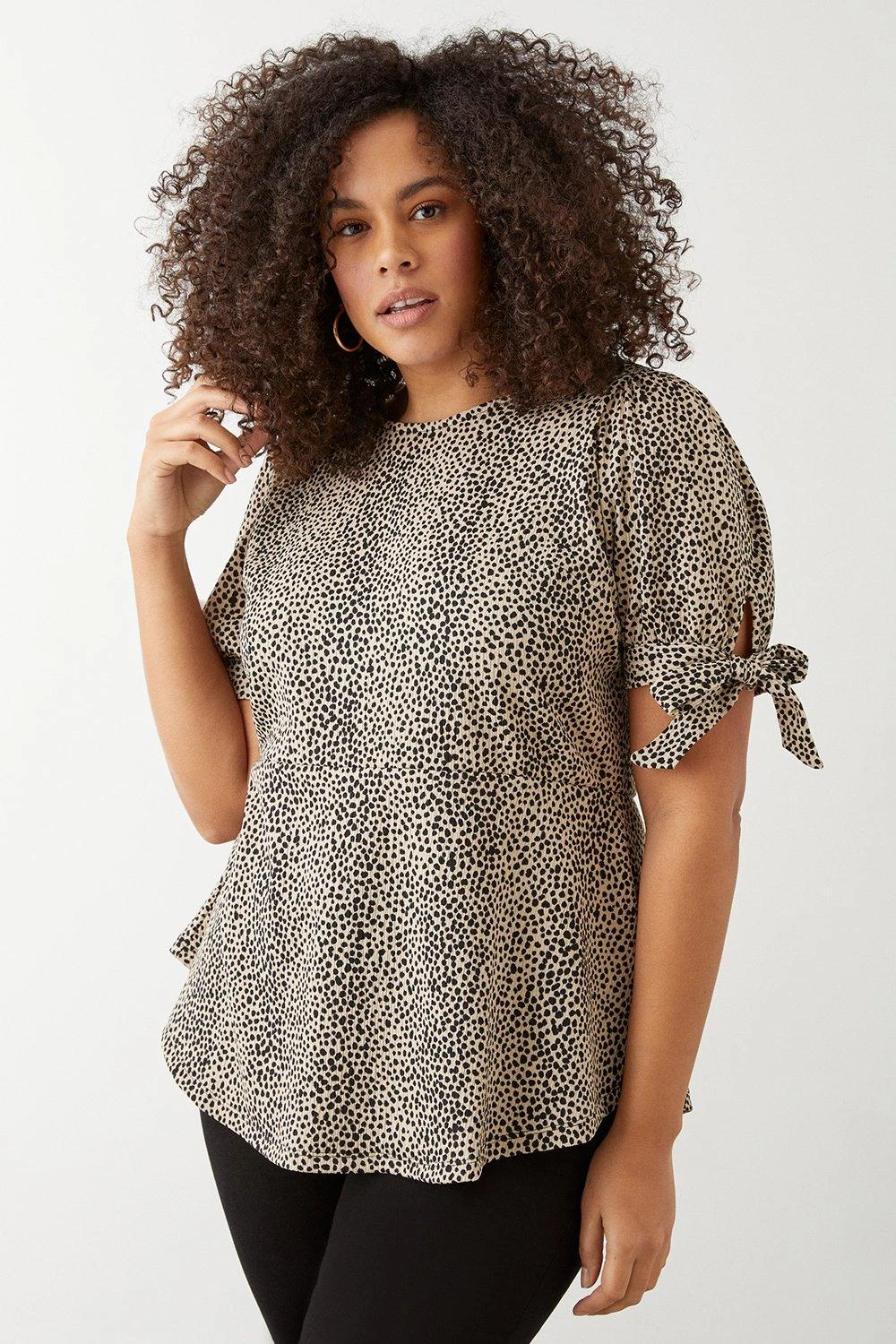 Dorothy Perkins Curve Camel Spot Tie Sleeve Top