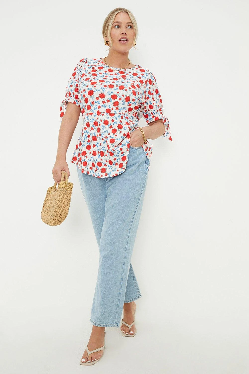 Dorothy Perkins Curve Red Ditsy Floral Tie Sleeve Blouse