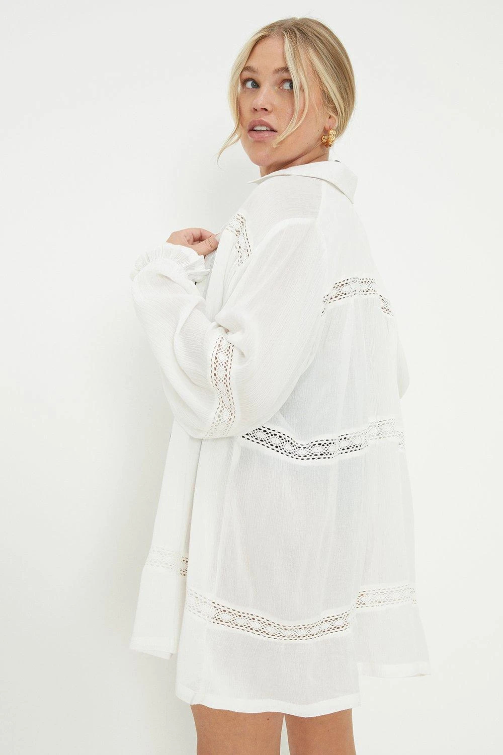 Dorothy Perkins Curve White Crinkle Lace Trim Oversized Shirt