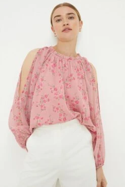 Cami or blouse? Shirt or bodysuit? Whatever you’re after, our women’s tops have you covered for every event in the social calendar. From casual fits to elevated styles for special occasions, we make it easy to nail the ‘jeans and a nice top’ look. Think puff sleeves, pretty prints, wrap silhouettes and so much more. Style: Ditsy Chiffon Open Shoulder Blouse. Ideal for: Daywear. Design: Frill. Model wears size UK 10 and is 5′ 9″ tall. Make-up & Fragrance: Primer (Estée Lauder, Futurist Aqua Brilliance Watery Glow Primer), Foundation (Estée Lauder, Futurist Hydra Rescue Moisturizing Foundation SPF45), Bronzer (Benefit Hoola Matte Powder Bronzer), Mascara (Benefit, They’Re Real Lengthening Mascara Jet Black 8.5g), Setting Spray (Urban Decay, All Nighter Setting Spray 118ml), Fragrance (Jimmy Choo Eau De Parfum Signature).