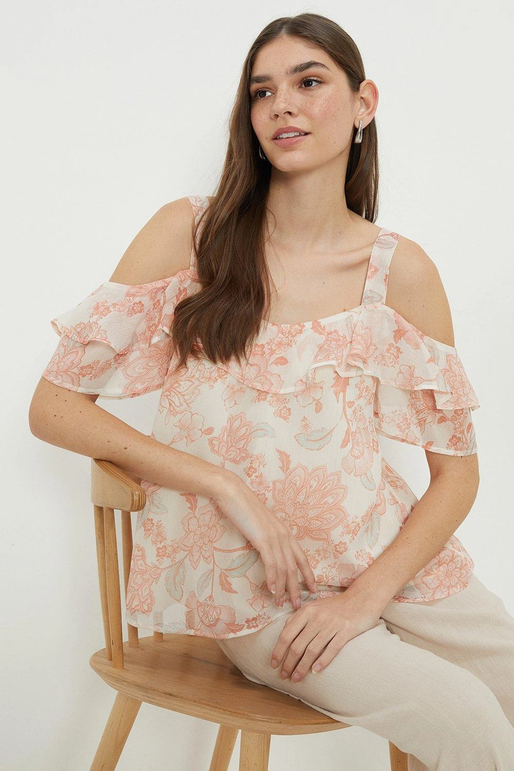 Dorothy Perkins Floral Chiffon Frill Neck Bardot Top
