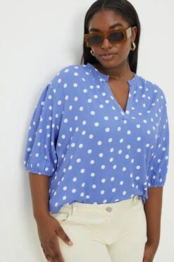 Dorothy Perkins Curve Blue Spot Short Sleeve Overhead Blouse