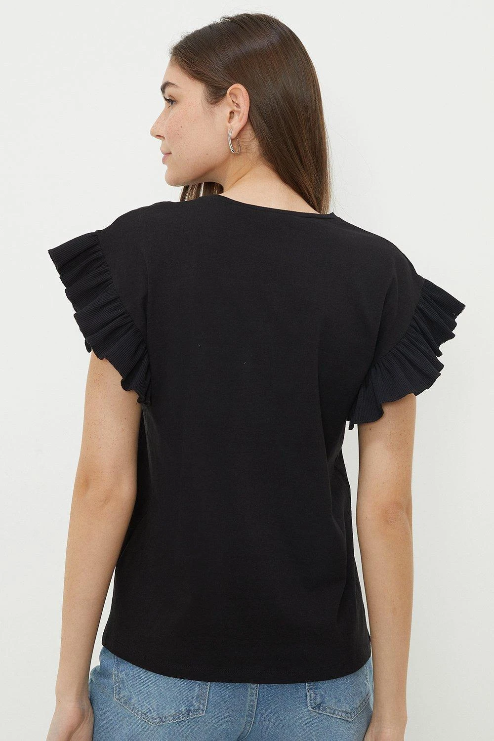 Dorothy Perkins Frill Sleeve Ribbed T-shirt