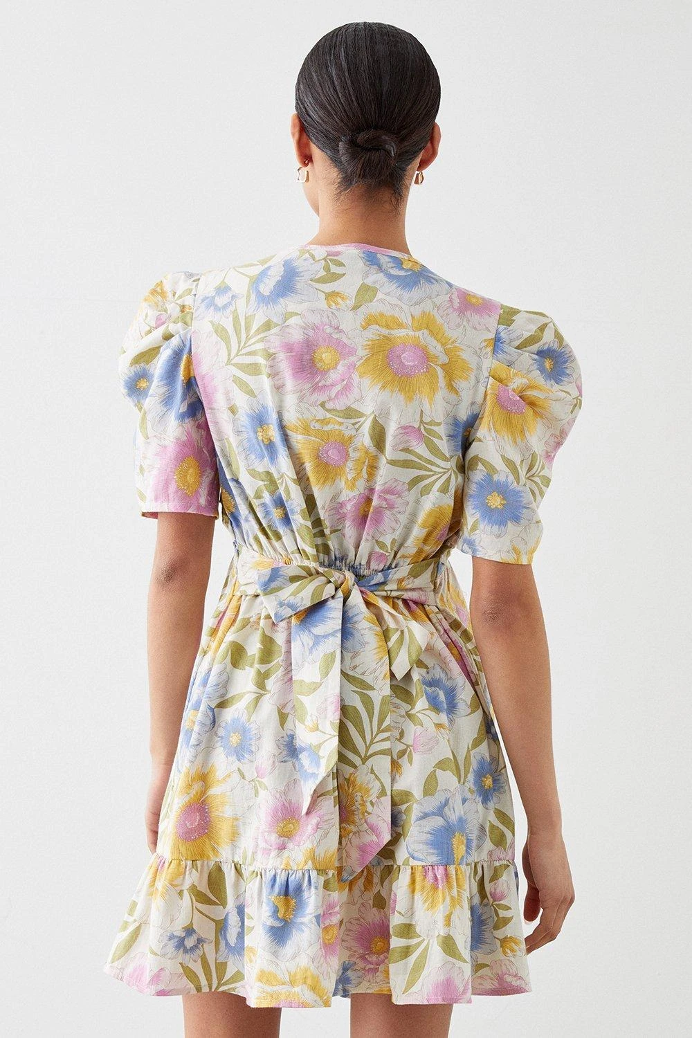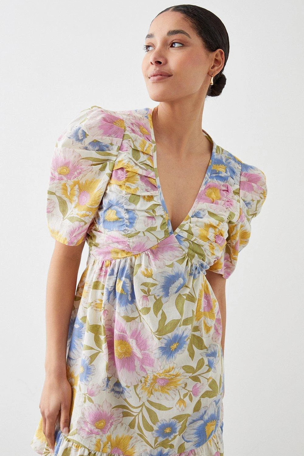 Dorothy Perkins Large Floral Ruched Tie Mini Dress