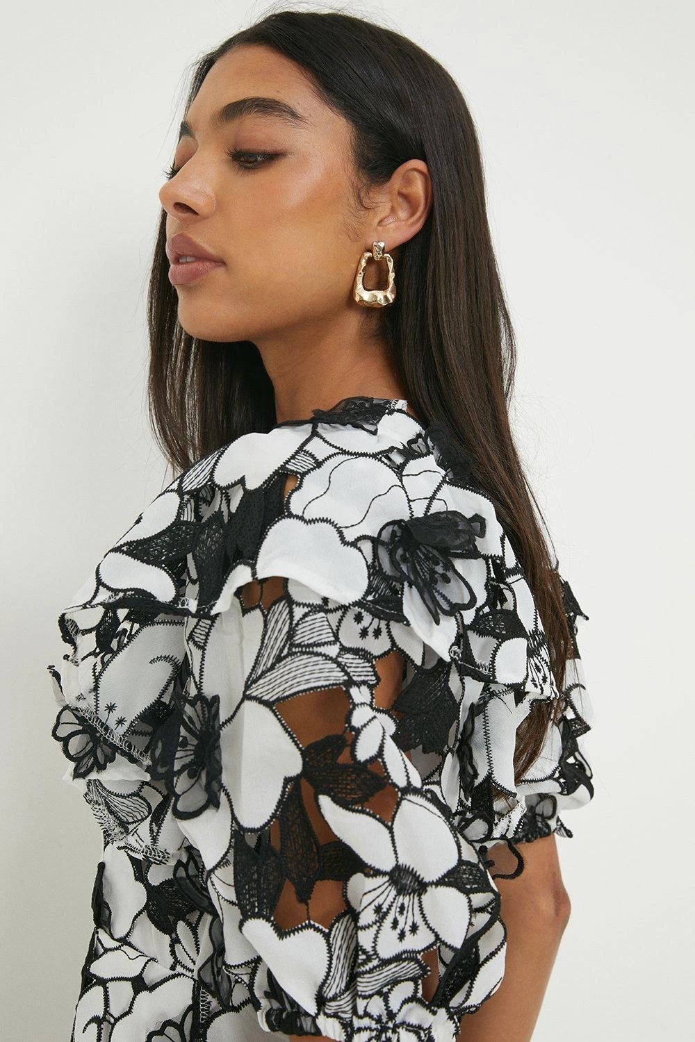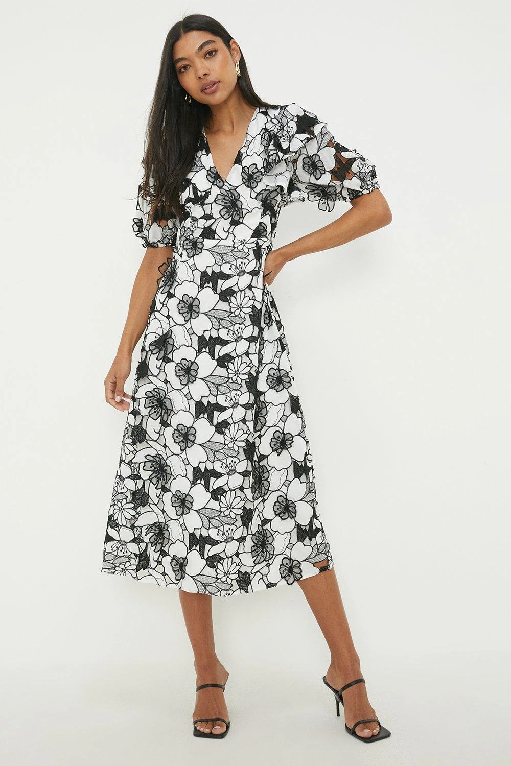 Dorothy Perkins Mono Frill Cutwork Midi Dress