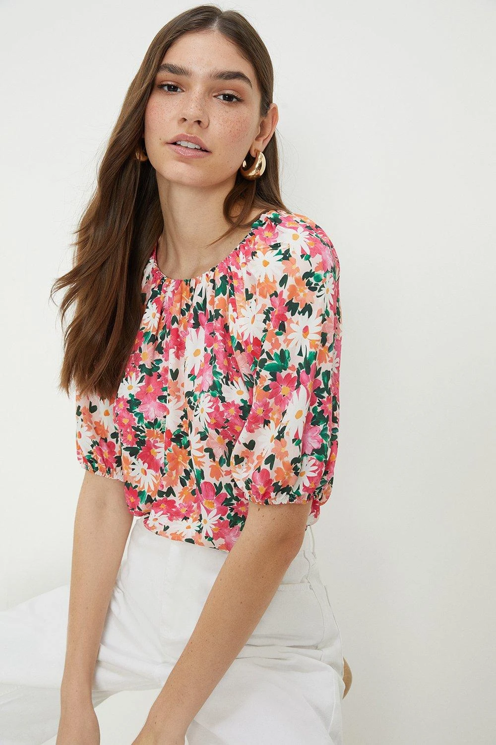 Dorothy Perkins Painted Floral Puff Sleeve Blouse