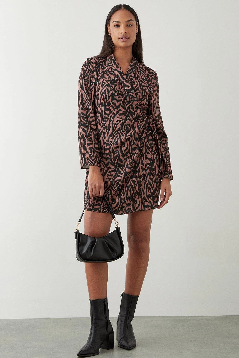 Dorothy Perkins Petite Animal Print Tie Wrap Mini Dress