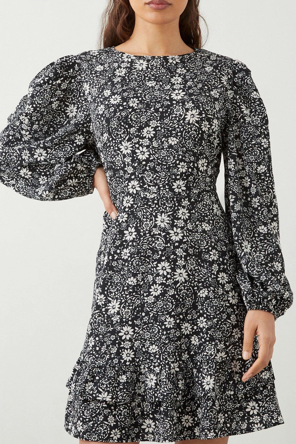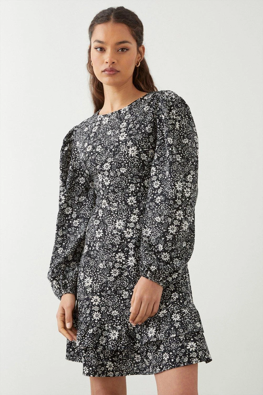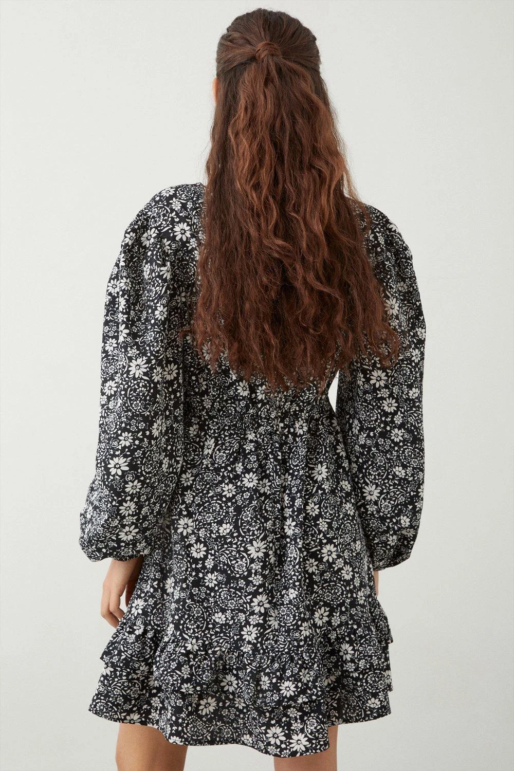 Dorothy Perkins Petite Black Paisley Ruffle Hem Mini Dress