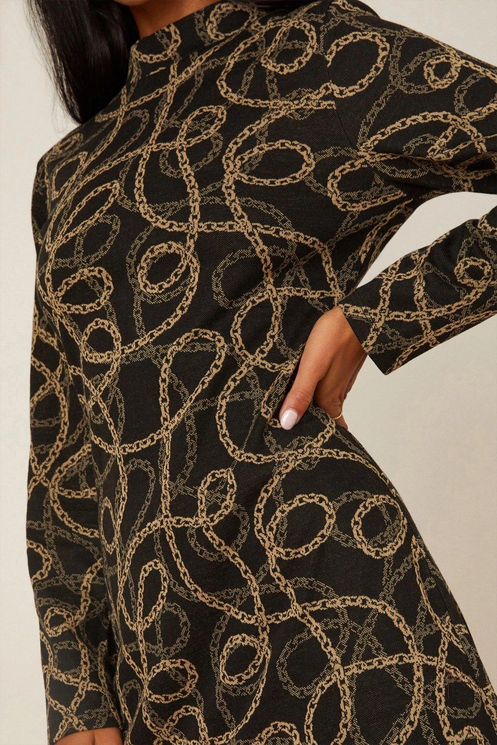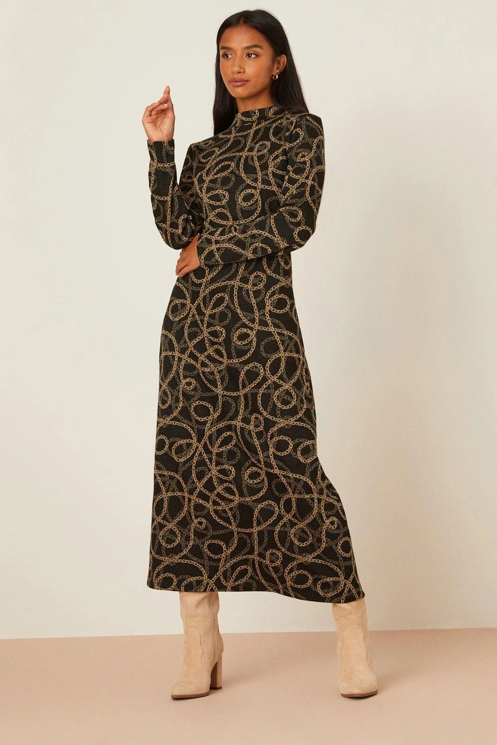 Dorothy Perkins Petite Chain Jacquard Long Sleeve Midi Dress