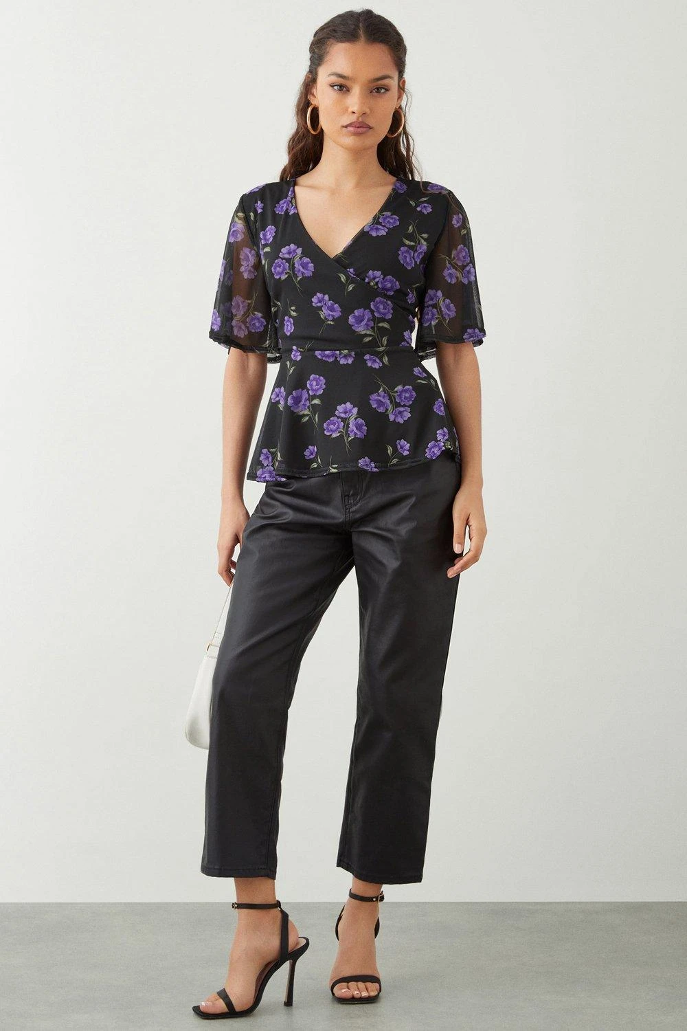 Dorothy Perkins Petite Floral Mesh Wrap Detail Printed Top