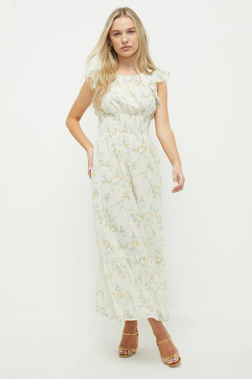 Dorothy Perkins Petite Ivory Ditsy Chiffon Shirred Waist Midi Dress