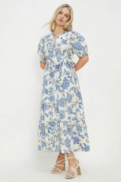 Dorothy Perkins Petite Ivory Poplin Floral Print Shirt Dress