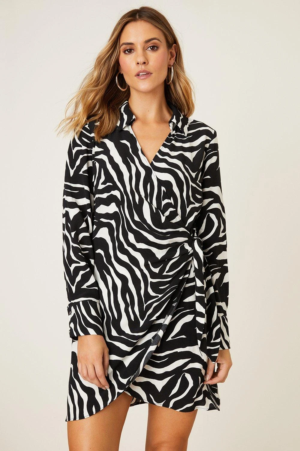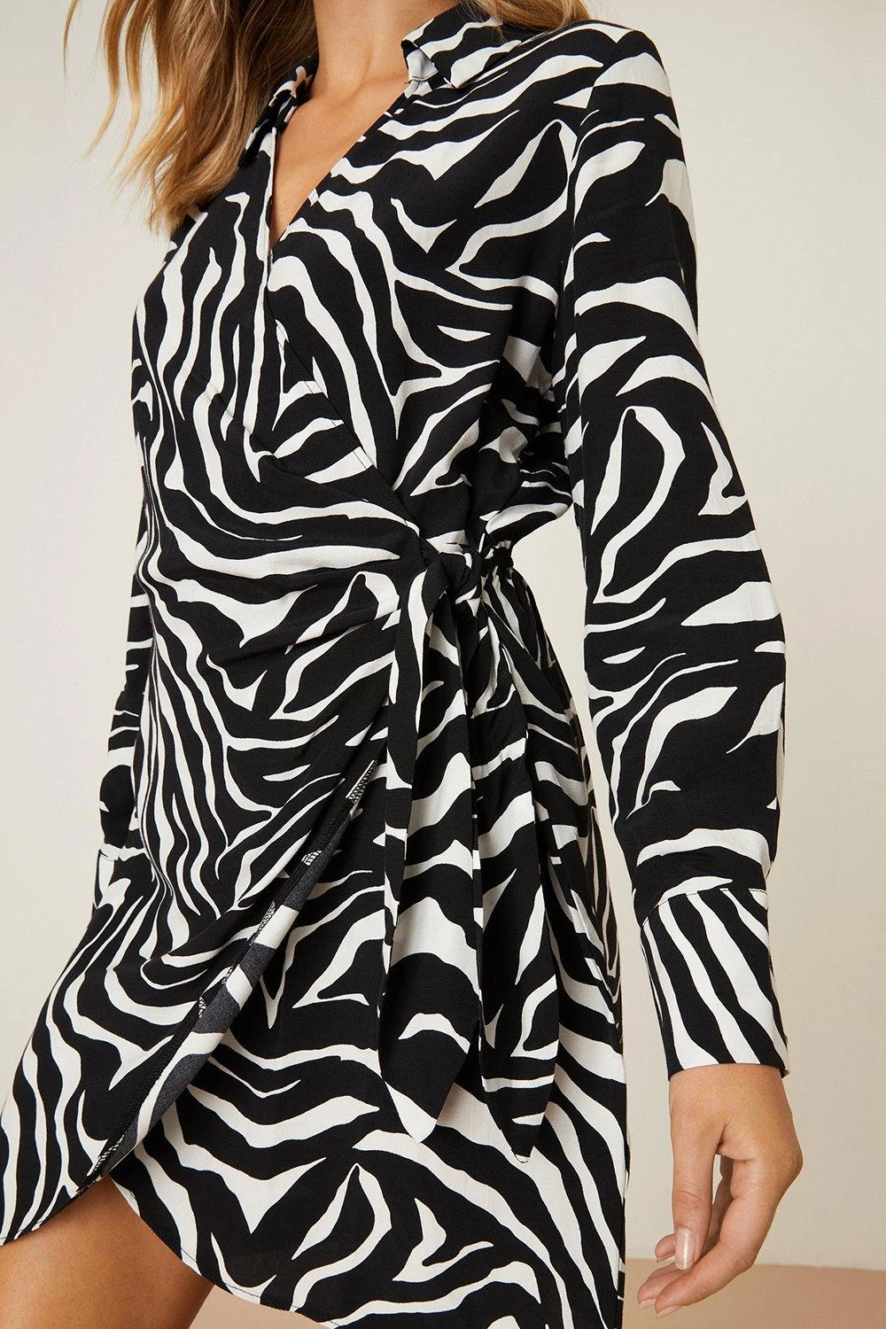 Dorothy Perkins Petite Mono Zebra Print Collar Wrap Mini Dress