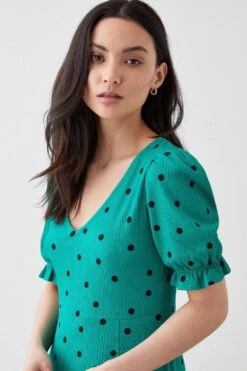 Dorothy Perkins Petite Spot Short Sleeve V Neck Midi Dress