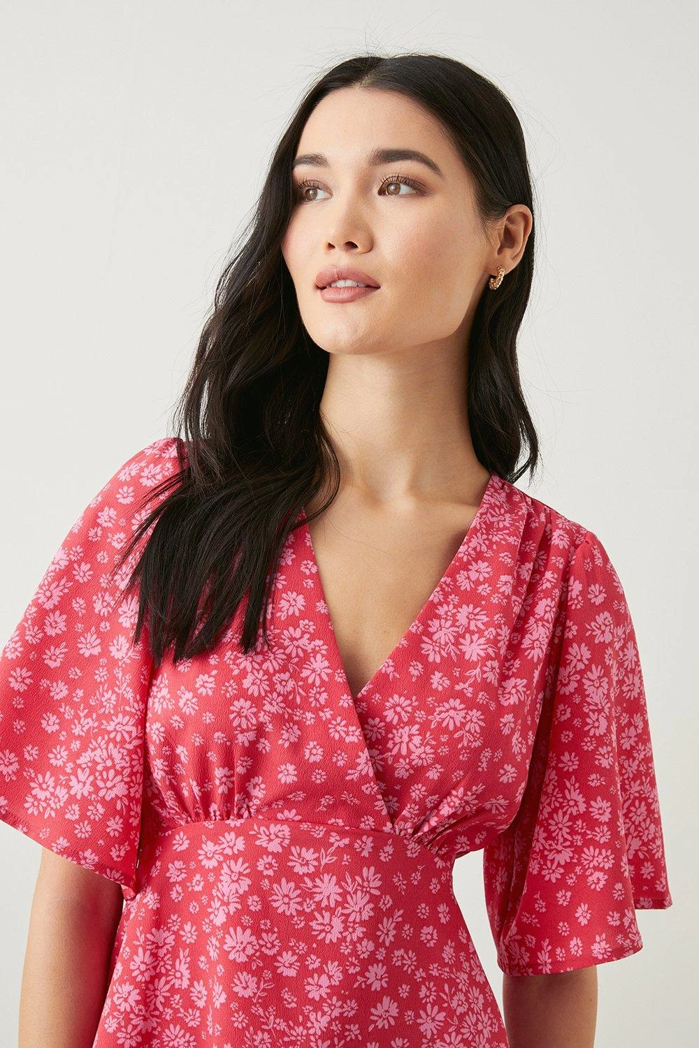 Dorothy Perkins Curve Red Floral Crinkle Angel Sleeve Blouse