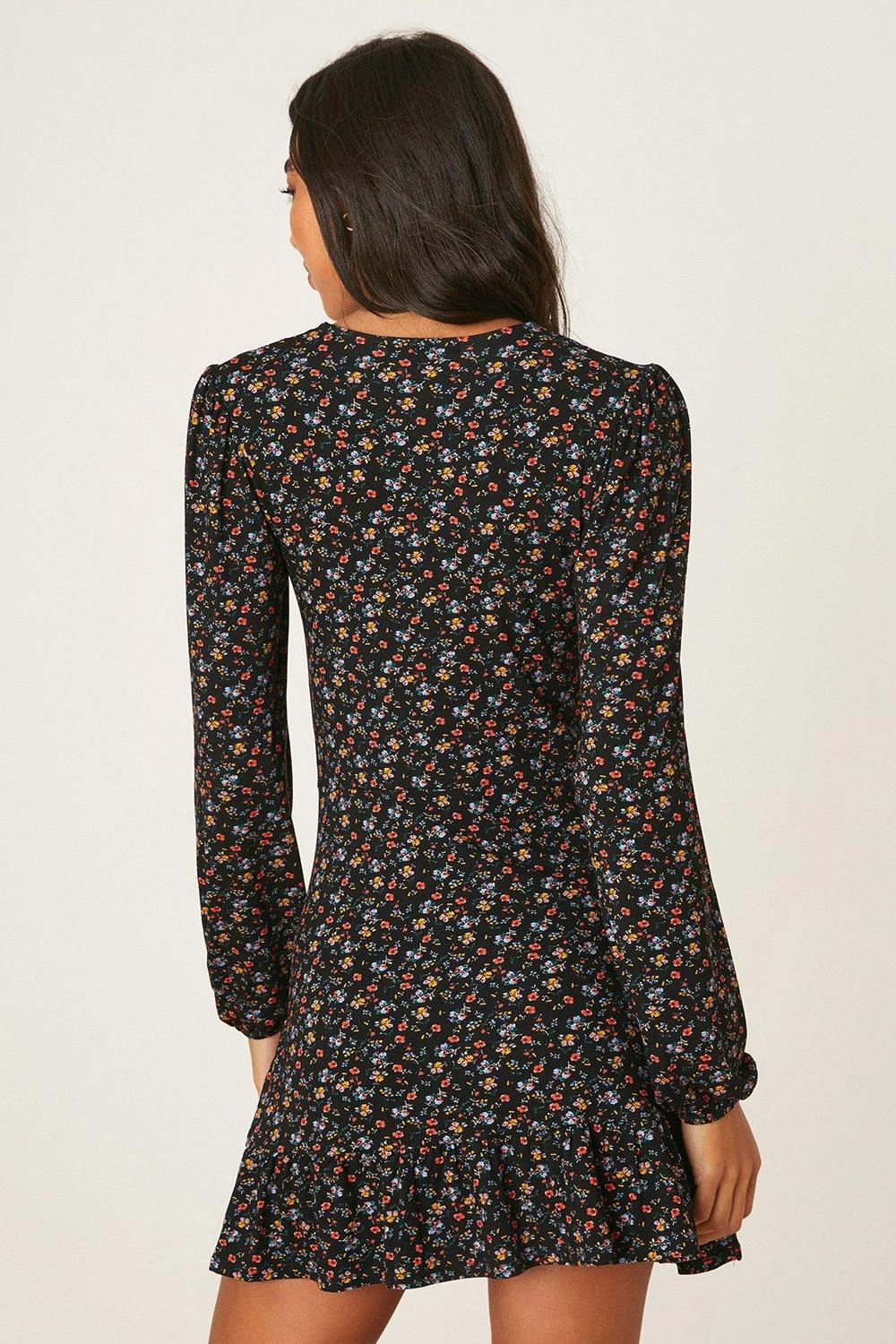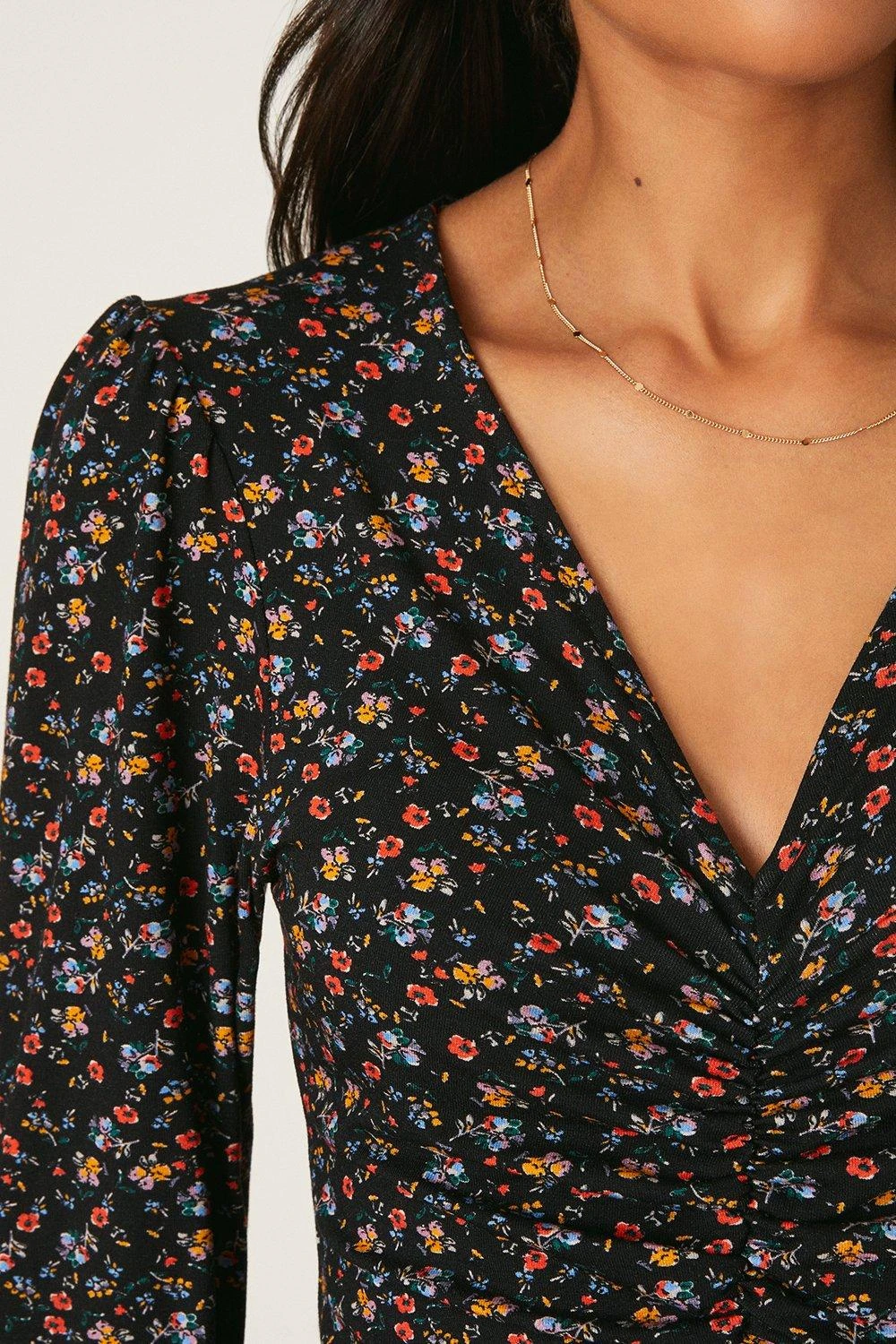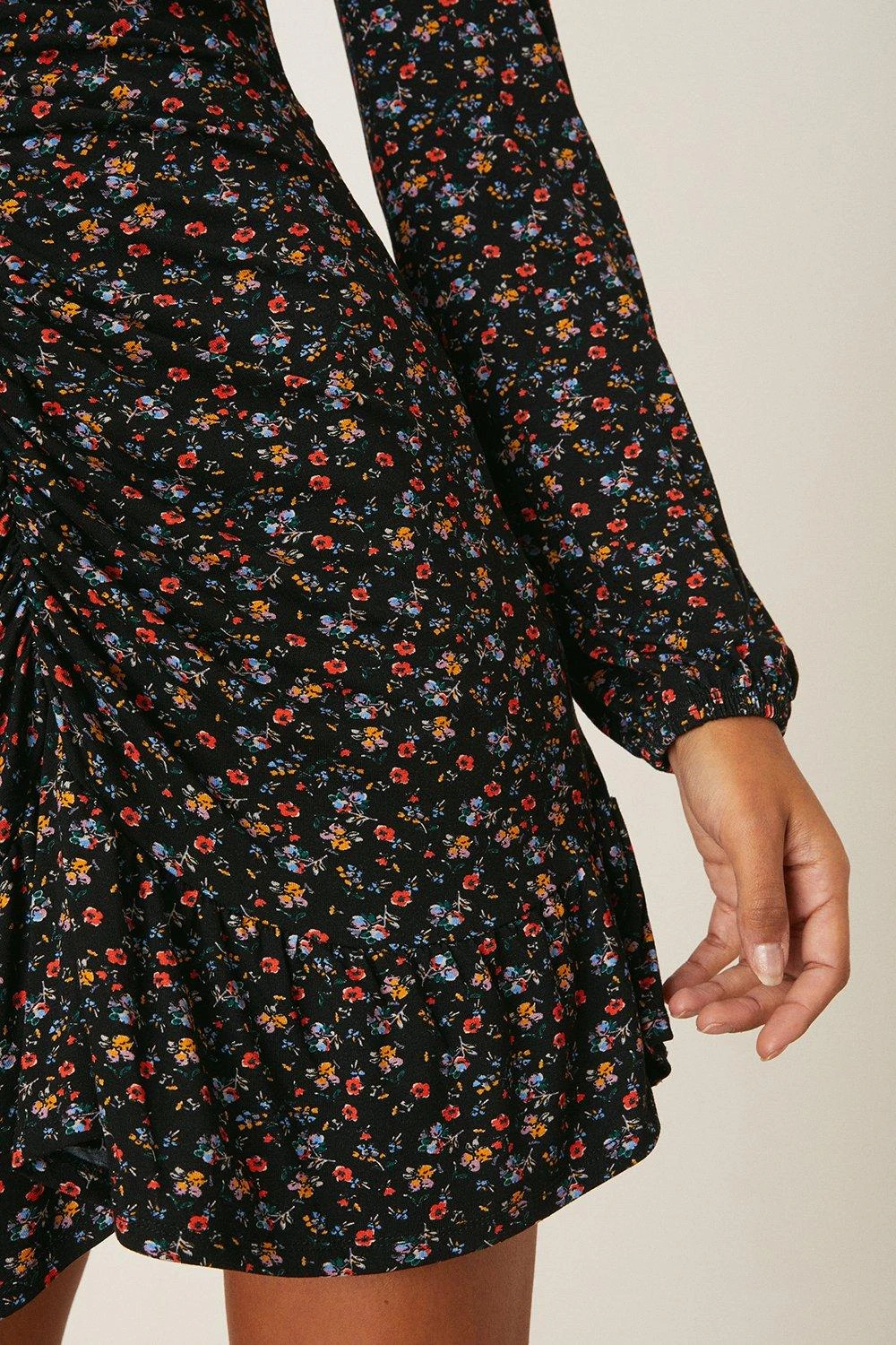 Dorothy Perkins Ruched Front Long Sleeve Ditsy Mini Dress