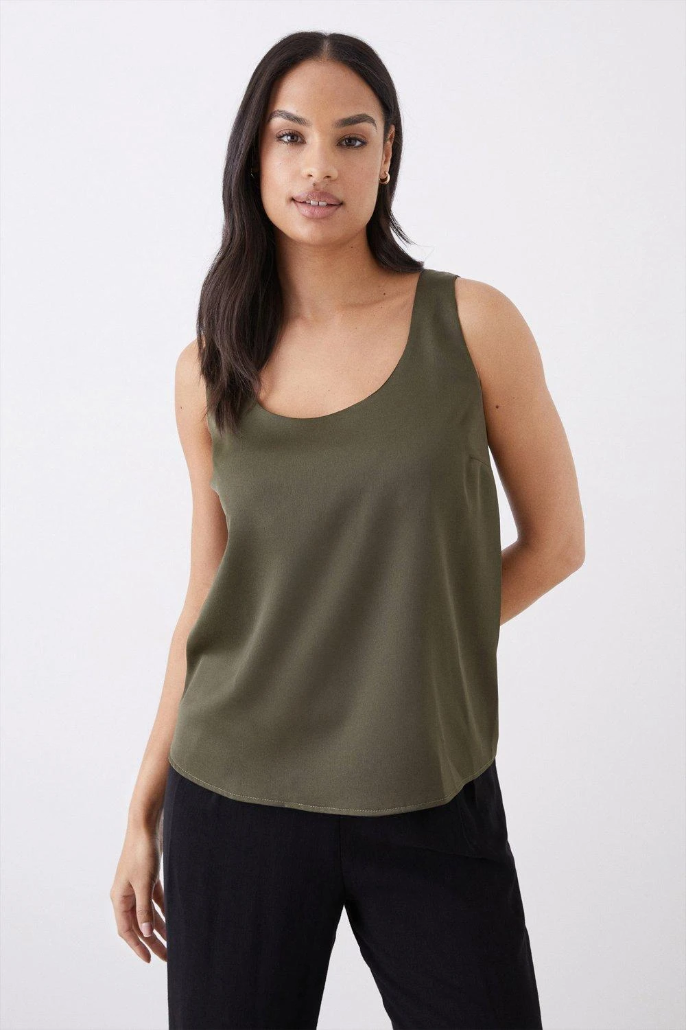 Cami or blouse? Shirt or bodysuit? Whatever you’re after, our women’s tops have you covered for every event in the social calendar. From casual fits to elevated styles for special occasions, we make it easy to nail the ‘jeans and a nice top’ look. Think puff sleeves, pretty prints, wrap silhouettes and so much more. Style: Scoop Neck Sleeveless Satin Vest. Ideal for: Daywear. Fit: Regular. Design: Seam Detail. Model wears size UK 10 and is 5′ 9″ tall. Make-up & Fragrance: Primer (Estée Lauder, The Mattifier Shine Control Perfecting Primer + Finisher), Foundation (Lancôme, Teint Miracle Luminous Satin Foundation), Mascara (Estée Lauder, Double Wear Zero-Smudge Lengthening Mascara), Blusher (Benefit, Wanderful World Blushes Starlaa Rosy Bronze Powder Blusher), Setting Spray (Benefit, Porefessional Super Setter Setting Spray Mini 30ml), Fragrance (Elie Saab, Elixir).