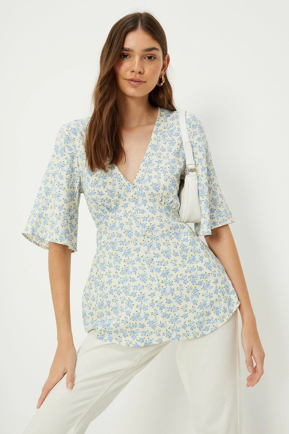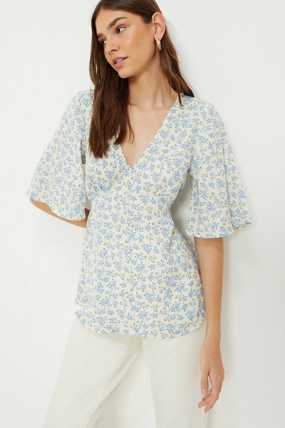 Dorothy Perkins Tall Blue Ditsy Button Through Tea Blouse
