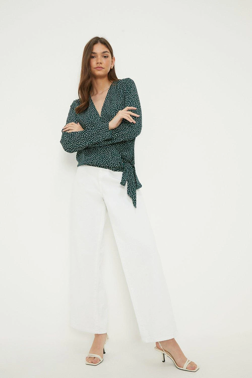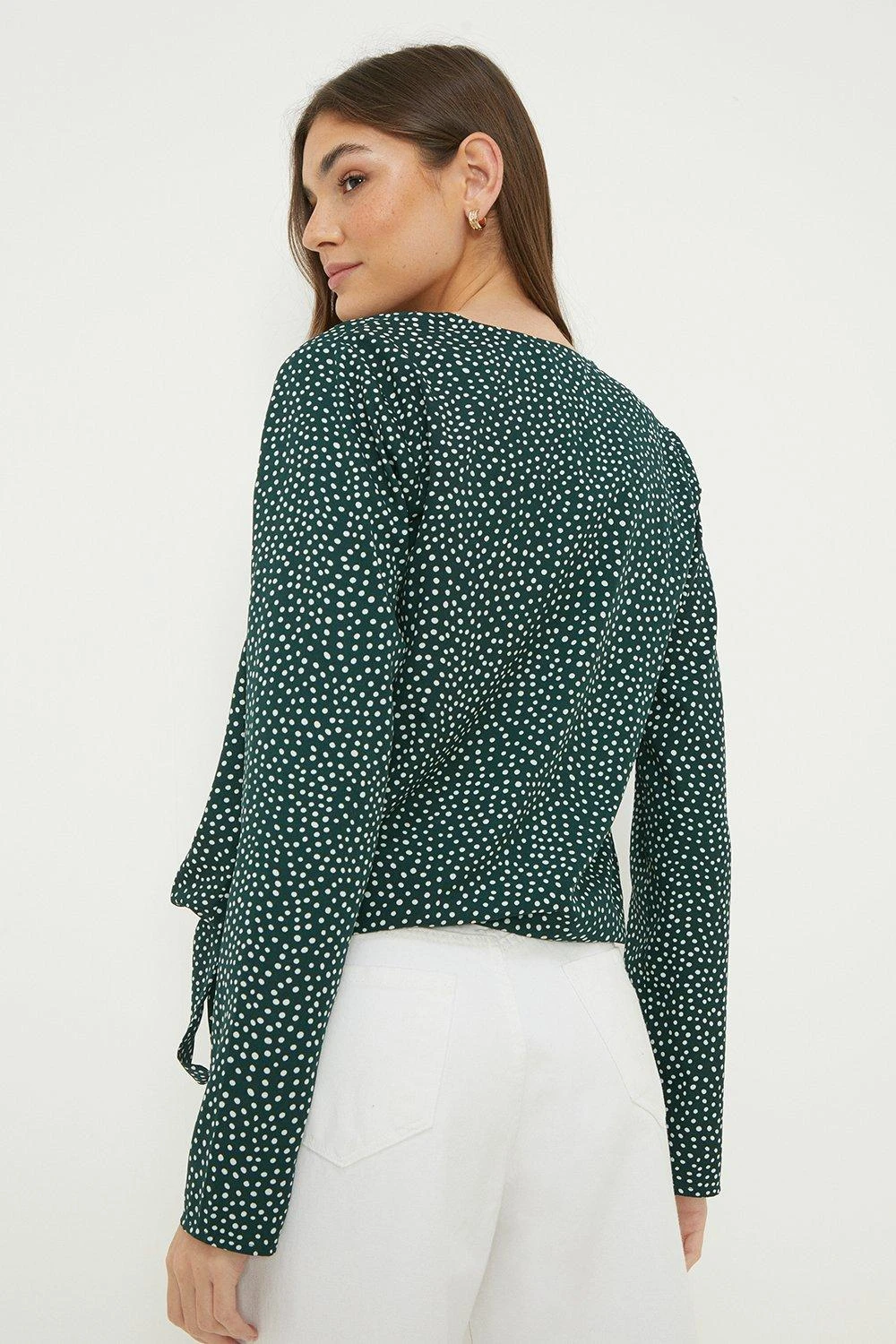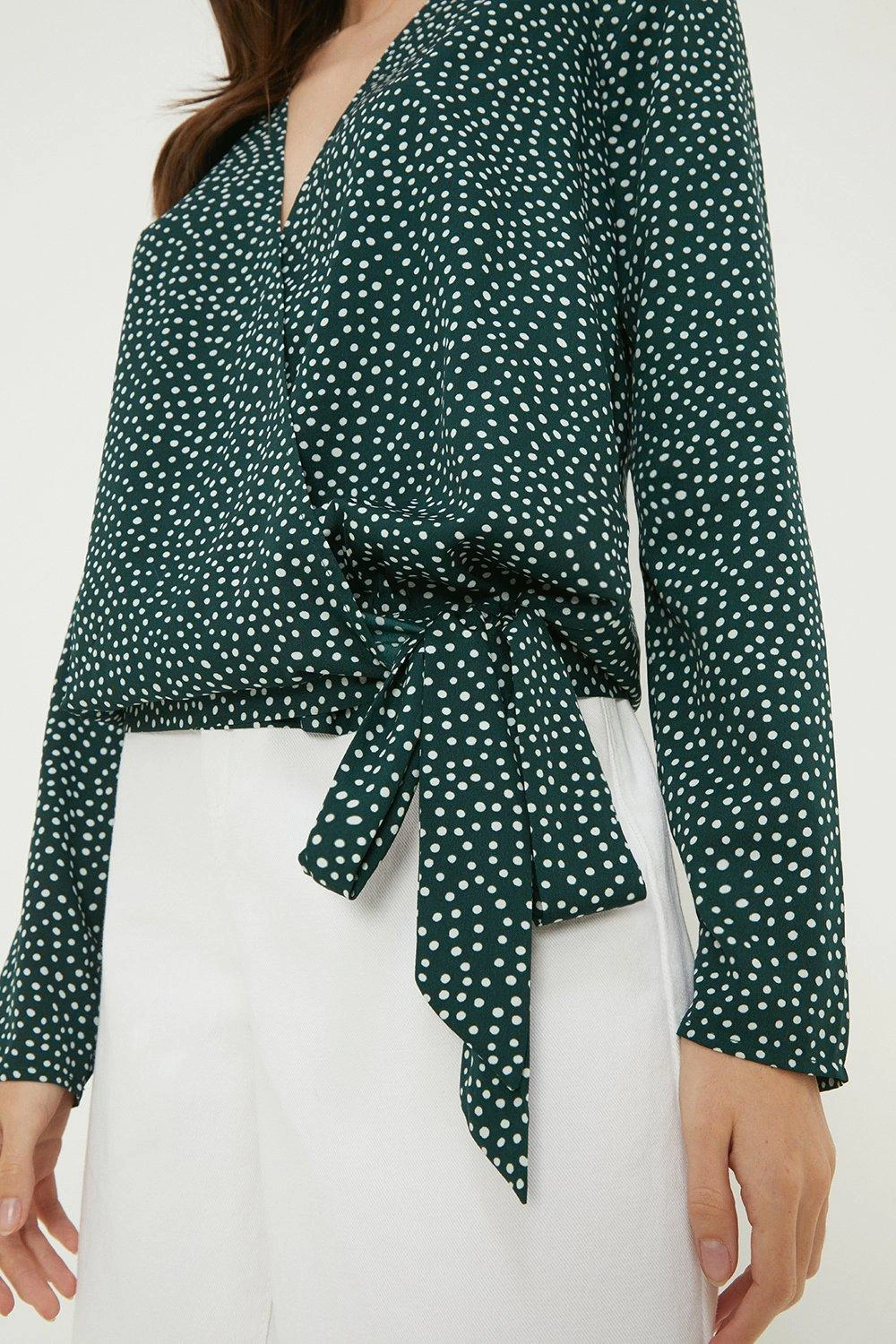 Dorothy Perkins Tall Green Spot Long Sleeve Wrap Blouse