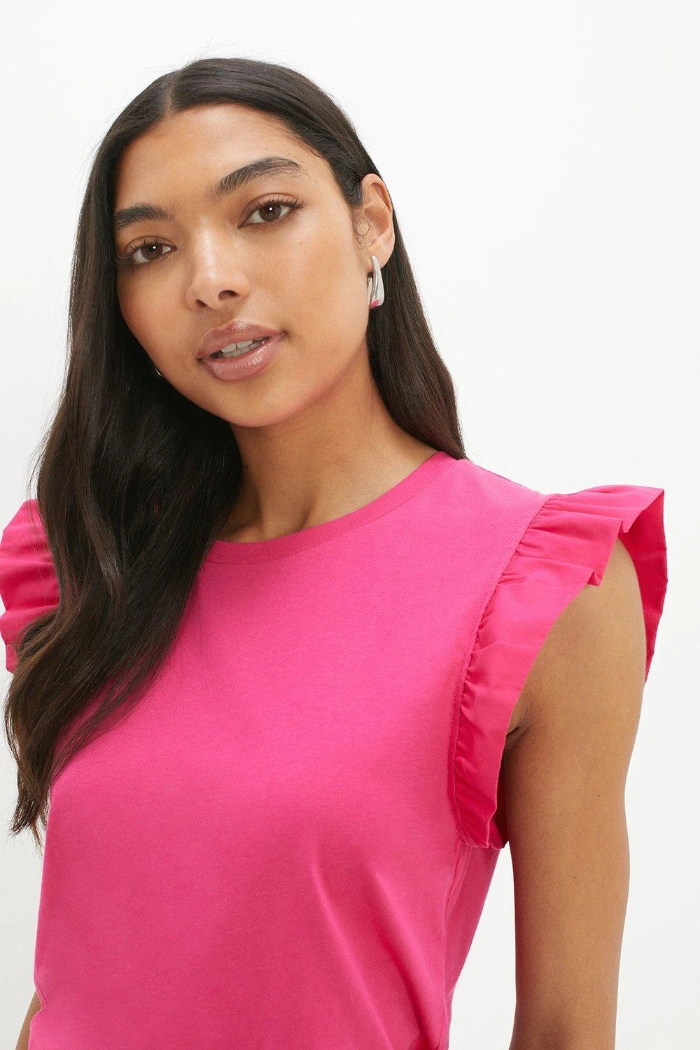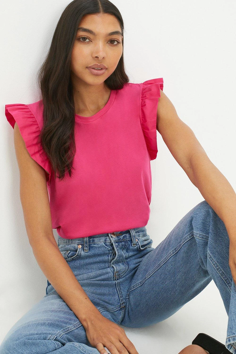 Cami or blouse? Shirt or bodysuit? Whatever you’re after, our women’s tops have you covered for every event in the social calendar. From casual fits to elevated styles for special occasions, we make it easy to nail the ‘jeans and a nice top’ look. Think puff sleeves, pretty prints, wrap silhouettes and so much more. Style: Tall Poplin Ruffle Sleeveless Top. Ideal for: Daywear. Design: Ruffle. Model wears size UK 10 and is 5′ 11″ tall. Make-up & Fragrance: Primer (Estée Lauder, Futurist Aqua Brilliance Watery Glow Primer), Foundation (Estée Lauder, Futurist Hydra Rescue Moisturizing Foundation SPF45), Bronzer (Benefit Hoola Matte Powder Bronzer), Mascara (Benefit, They’Re Real Lengthening Mascara Jet Black 8.5g), Setting Spray (Urban Decay, All Nighter Setting Spray 118ml), Fragrance (Jimmy Choo Eau De Parfum Signature).