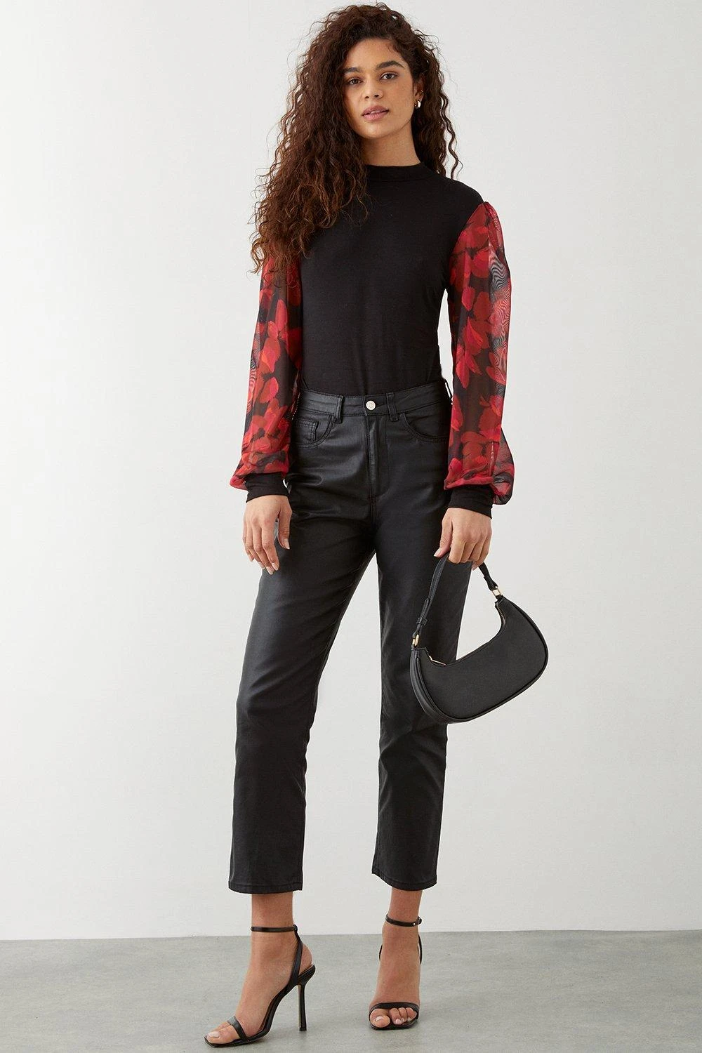 Dorothy Perkins Tall Printed Volume Mesh Sleeve Top