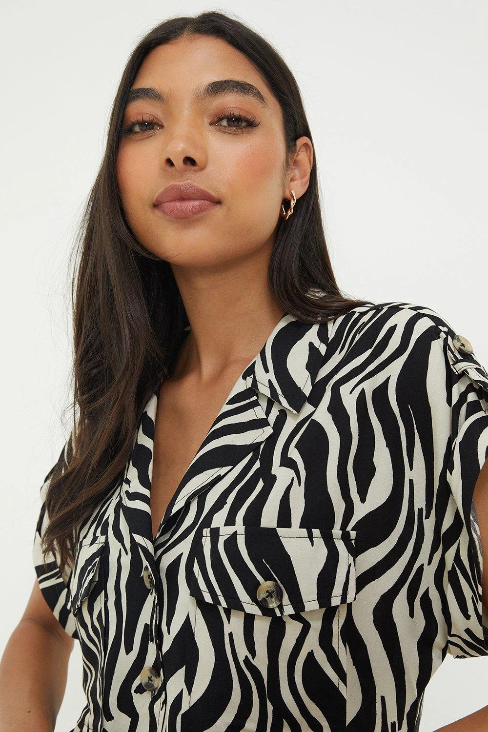 Dorothy Perkins Zebra Print Short Sleeve Shirt With Pockets
