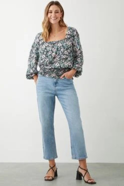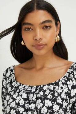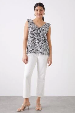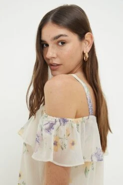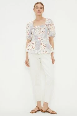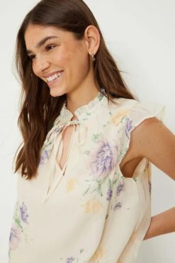 Dorothy Perkins Ivory Floral Chiffon Shirred Hem Tie Front Blouse
