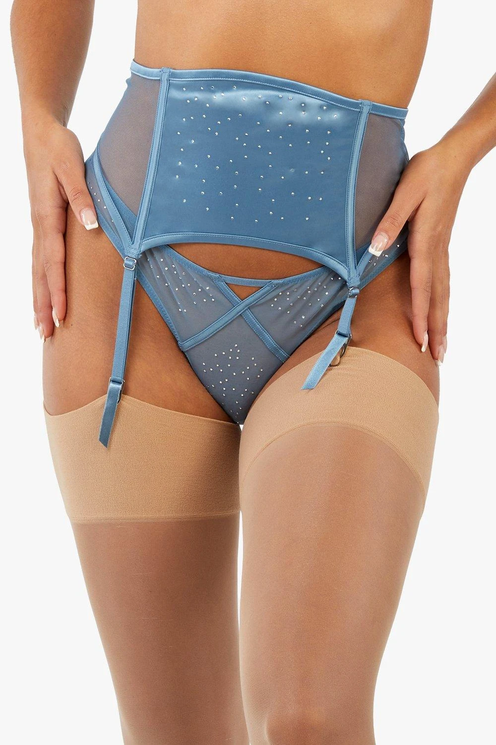 Are you ready to be dazzled in the OLYMPIA Waspie? mesh and satin Waspie scattered with dazzling diamantes that will make you shine. Pair with our matching Bra and one of the Olympia briefs for a sparkling full set. mesh and satin cups with diamante detailing. Underwired. Adjustable Straps. Hook and eye closure. Gold Hardware.
