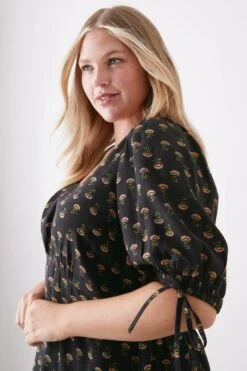 Dorothy Perkins Curve Black Floral Tie Sleeve Square Neck Blouse