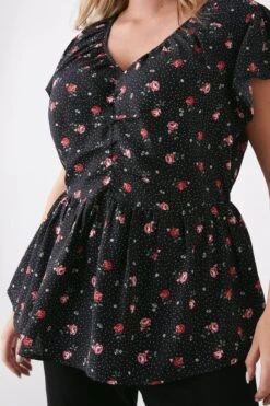 Dorothy Perkins Curve Red Floral Crinkle Angel Sleeve Blouse