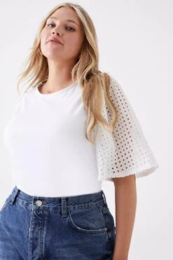 Dorothy Perkins Curve White Crinkle Lace Trim Oversized Shirt